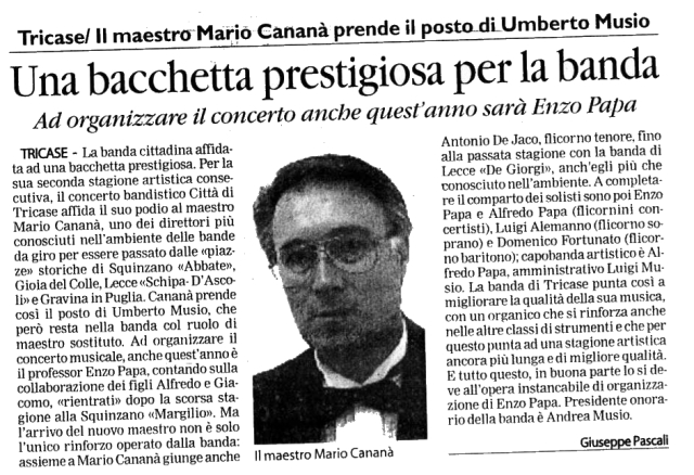 Il prof. Enzo Papa, capo banda, flicornino concertista, alla serata di presentazione della stagione artistica 2004 del gran concerto bandistico "Cittā di Tricase" |